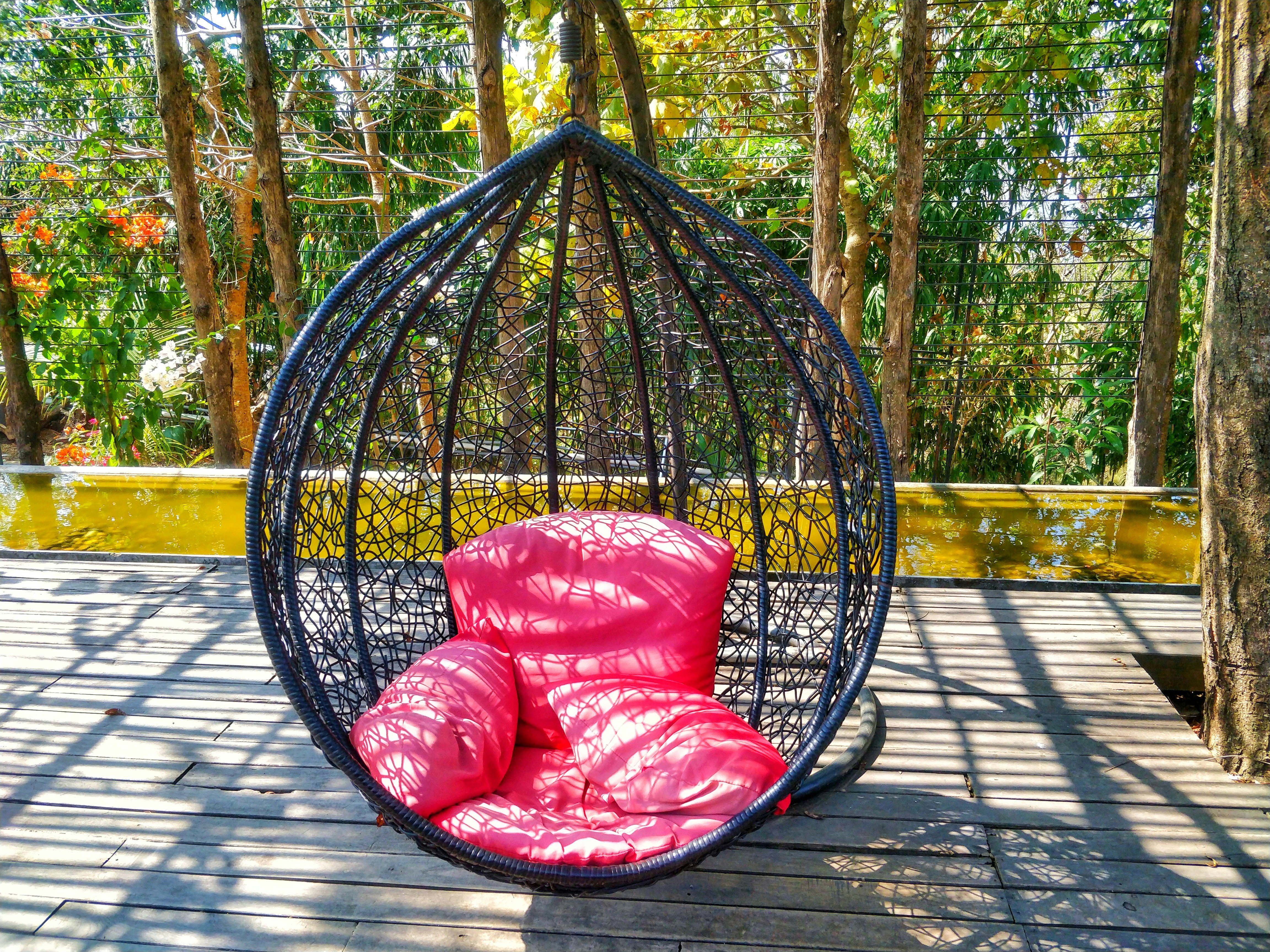 Αν έχετε αρκετό χώρο, προτιμήστε μία κρεμαστή πολυθρόνα ή ακόμα και κρεμαστό καναπέ. Εκτός του ότι είναι εντυπωσιακή, είναι και πρακτική, αφού κάποιος μπορεί να κάθεται στην πολυθρόνα αντικριστά με κάποιον άλλον και να συνομιλούν.