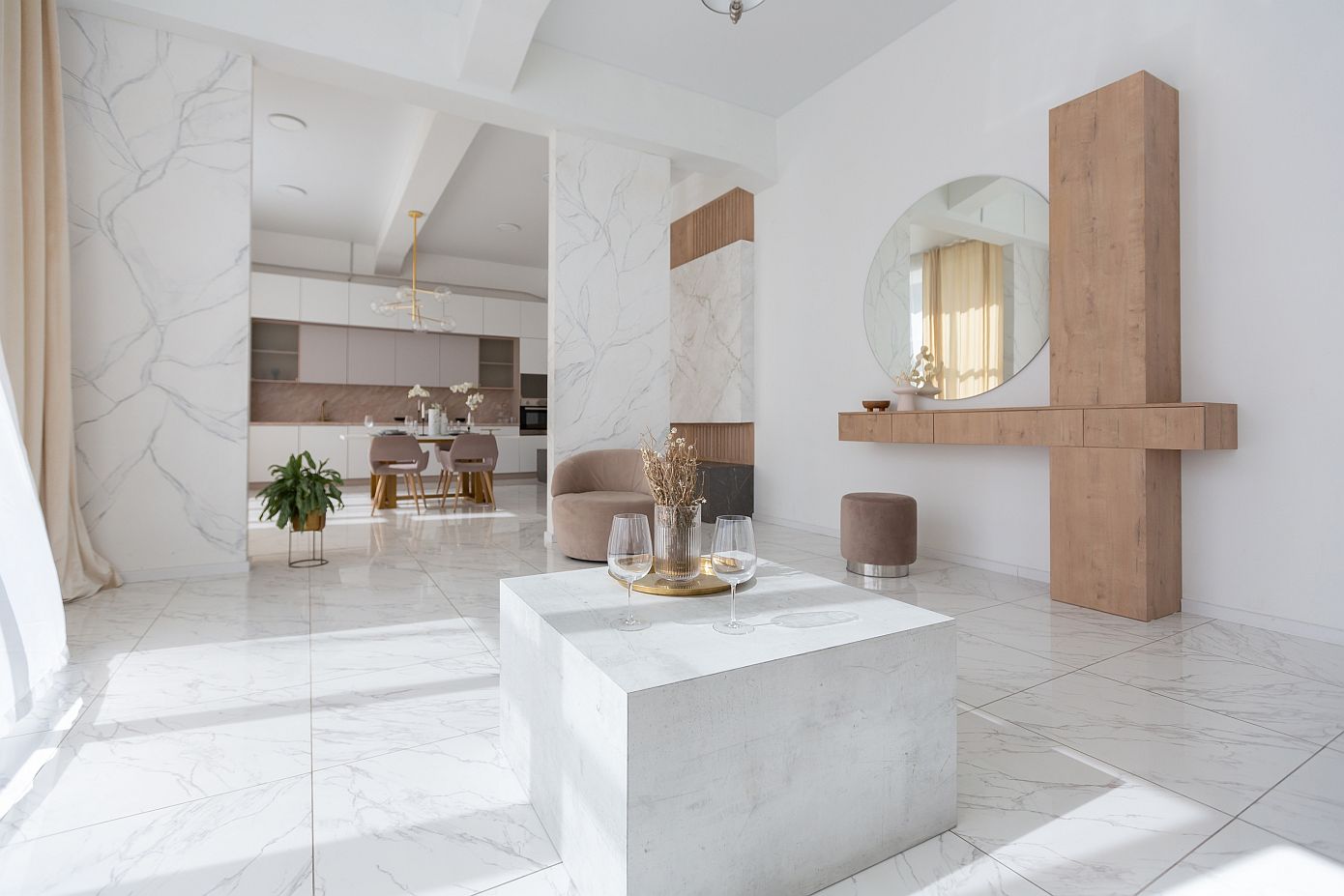 Τα γυαλιστερά φινιρίσματα έχουν την ιδιότητα να αντανακλούν το φως και έτσι κάνουν τον χώρο να δείχνει μεγαλύτερος και φωτεινότερος, προσδίδοντας έναν αέρα λάμψης και πολυτέλειας το σπίτι. Καθαρίζονται πιο εύκολα, καθώς οι λεκέδες και οι ρύποι δεν εισχωρούν μέσα στις επιφάνειες, κάτι που τα κάνει ιδανικά για τις κουζίνες και τα μπάνια που επιθυμούμε να δείχνουν καθαρά και φωτεινά. Αν χρησιμοποιηθούν σε μικρούς χώρους, θα τους κάνει να φαίνονται μεγαλύτεροι και πιο ανοιχτοί, ενώ προσδίδουν έναν αέρα επισημότητας και πολυτέλειας.