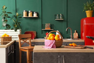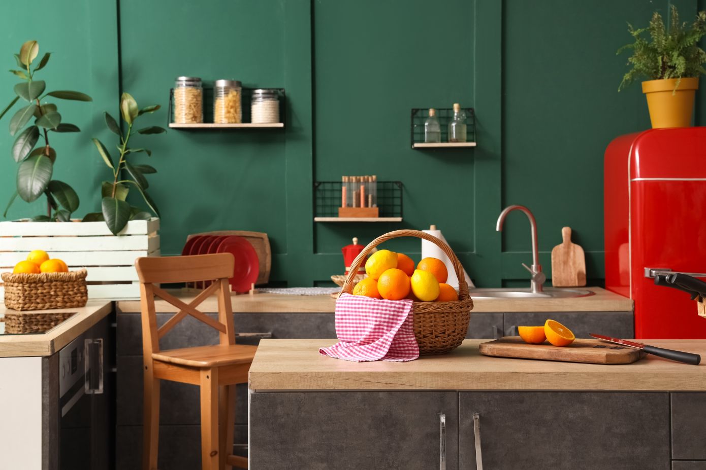 Για πιο διακριτική εφαρμογή: Προσθέστε μικρές πράσινες λεπτομέρειες όπως πιάτα, ποτήρια, κατσαρόλες ή διακοσμητικά βάζα, που δίνουν ζωντάνια χωρίς να χρειαστεί ριζική αλλαγή.