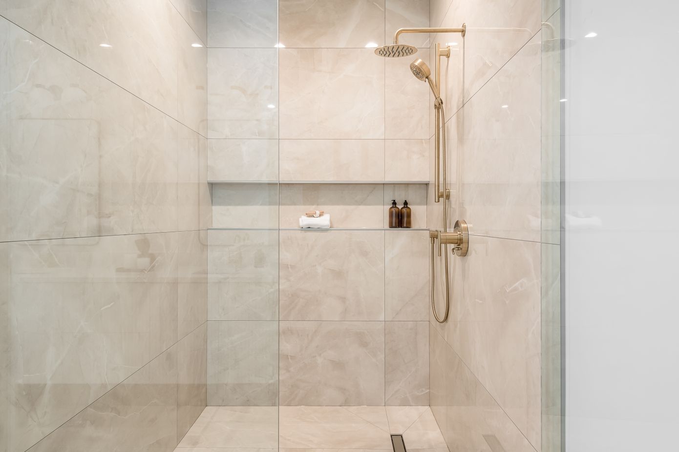 Ο όρος δεν σημαίνει ότι δεν τη βλέπουμε καθόλου, αλλά ότι ενσωματώνεται απόλυτα στο μπάνιο. Το γυαλί είναι διάφανο, χωρίς μεταλλικά περιγράμματα, ενώ συχνά το δάπεδο της ντουζιέρας βρίσκεται στο ίδιο επίπεδο με το υπόλοιπο μπάνιο. Έτσι, δεν υπάρχει οπτικός διαχωρισμός και ο χώρος δείχνει μεγαλύτερος και πιο ήρεμος.