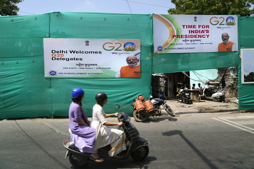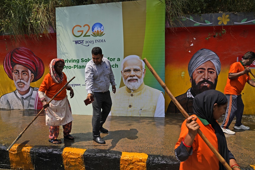 Στις πινακίδες που τώρα περιβάλλουν τις φτωχογειτονιές του Δελχί, τώρα έχουν τοποθετηθεί μεγάλες αφίσες με το πρόσωπο του Ινδού πρωθυπουργού, Ναρέντρα Μόντι, οι οποίες καλωσορίζουν τους ξένους ηγέτες των G20 που είναι πιθανό να περάσουν από εκεί.