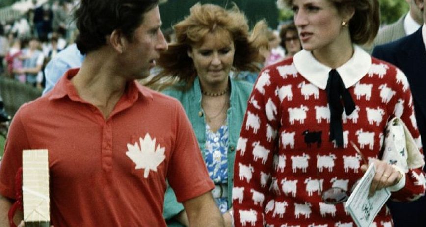Αμέσως μετά τον αρραβώνα της, η Νταϊάνα Σπένσερ εμφανίστηκε τον Ιούνιο του 1981 με αυτό το κόκκινο πουλόβερ με τα άσπρα προβατάκια – εκτός από ένα και μοναδικό μαύρο – σε έναν αγώνα πόλο, τον οποίο παρακολούθησε και ο τότε πρίγκιπας Κάρολος.