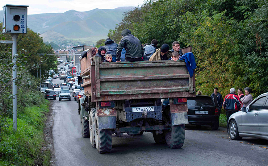Η Αρμενία, η οποία υποστήριζε αυτές τις δεκαετίες το έδαφος αυτό, δεν επενέβη στρατιωτικά αυτή τη φορά, ανοίγοντας το δρόμο για την επανένταξη της περιφέρειας αυτής στο Αζερμπαϊτζάν. Ο αρμενικός πληθυσμός του Ναγκόρνο Καραμπάχ έχει αρχίσει μια έξοδο: περίπου 65.000 άνθρωποι, δηλαδή οι μισοί από τους περίπου 120.000 κατοίκους του θυλάκου, έχουν διαφύγει μέσα σε μερικές ημέρες φοβούμενοι ότι θα αποτελέσουν στόχο καταστολής από το Αζερμπαϊτζάν, παρά τις υποσχέσεις του Μπακού ότι θα σεβαστεί τα δικαιώματά τους.