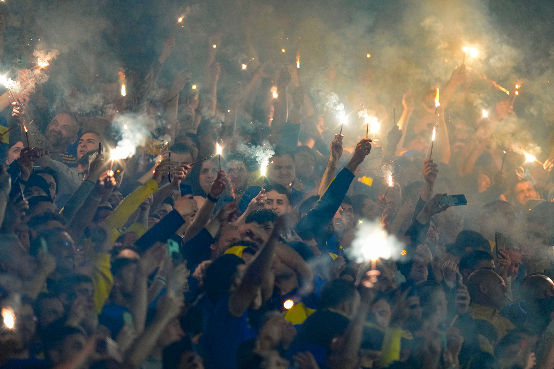 Οπαδοί της Μπόκα Τζούνιορς της Αργεντινής ζητωκραυγάζουν και ανάβουν φωτοβολίδες καθώς περιμένουν την έναρξη του ημιτελικού αγώνα ποδοσφαίρου Copa Libertadores με την Παλμέιρας της Βραζιλίας στο στάδιο Bombonera στο Μπουένος Άιρες της Αργεντινής. Ο αγώνας έληξε σε ισοπαλία, άρα, οι οπαδοί και από τις δύο ομάδες γύρισαν χαρούμενοι.