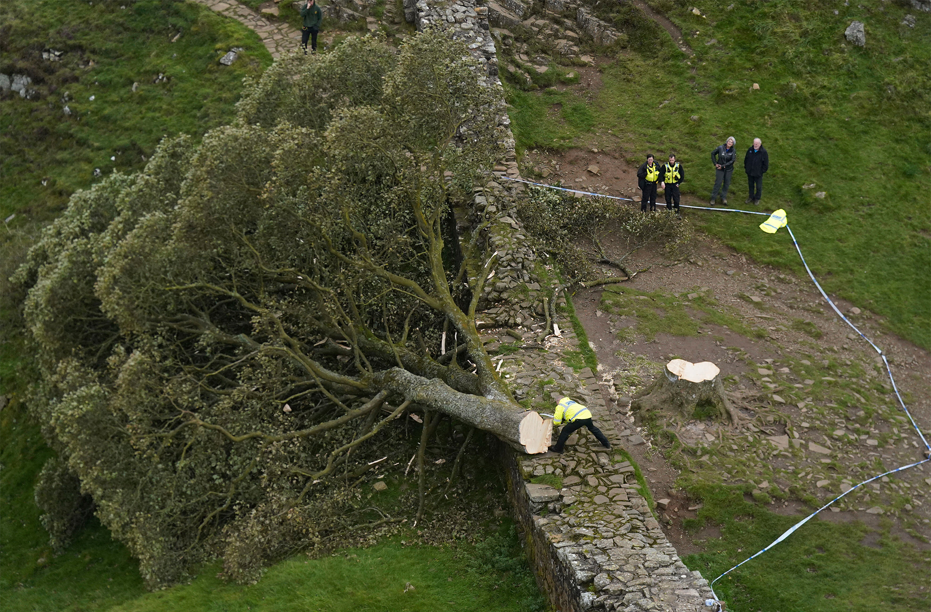 Ένα σπουδαίο αξιοθέατο της Βρετανίας, γνωστό και ως το δέντρο του Ρομπέν των Δασών, βανδαλίστηκε. Το μόνο που έχει να θυμίζει το δέντρο, που είχε αναγορευθεί «δένδρο της χρονιάς» το 2016, είναι οι ρίζες του. Σύμφωνα με τις πρώτες πληροφορίες, το Sycamore Gap κόπηκε με πριόνι, ενώ έχει ξεκινήσει έρευνα για τον εντοπισμό των θυτών.