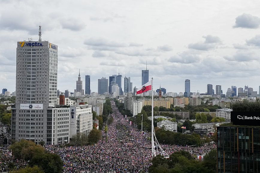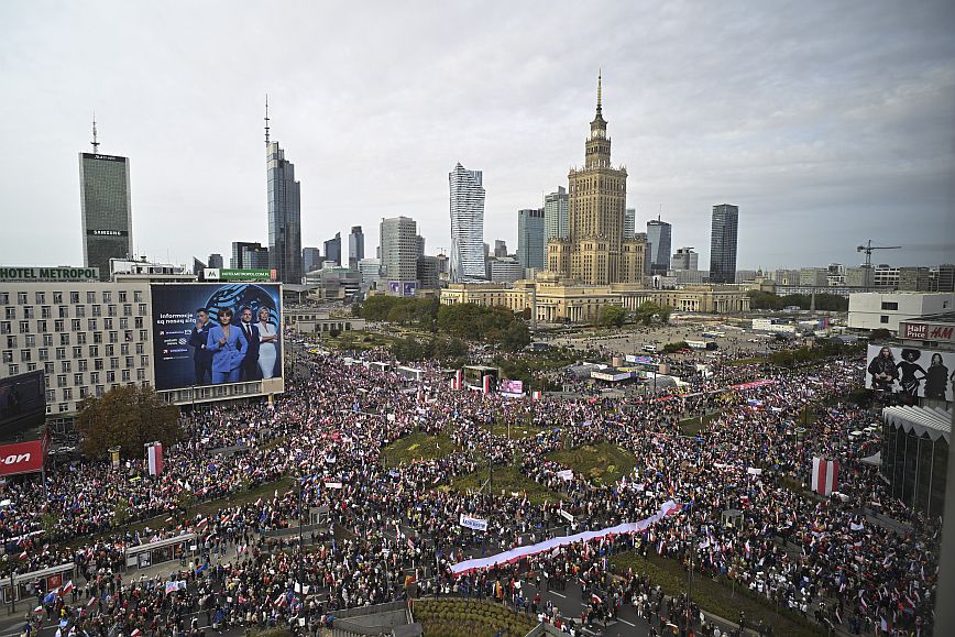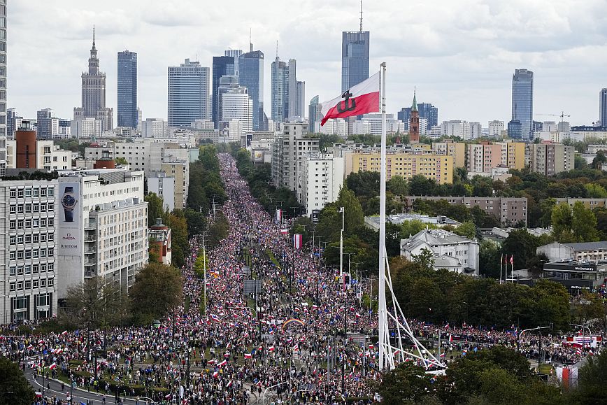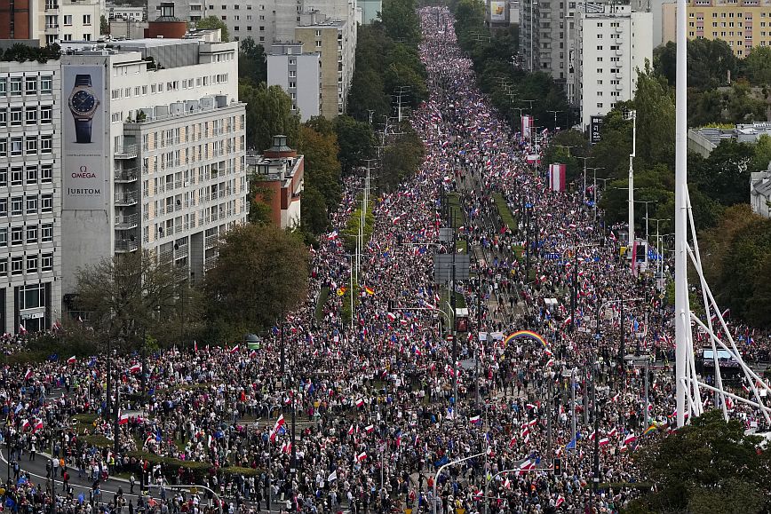 Εκατοντάδες χιλιάδες άνθρωποι συμμετείχαν σήμερα σε διαδήλωση της αντιπολίτευσης στη Βαρσοβία, δύο εβδομάδες πριν από τις βουλευτικές εκλογές οι οποίες σύμφωνα με τη φιλελεύθερη Πολιτική Πλατφόρμα (PO) μπορεί να καθορίσουν το μέλλον της Πολωνίας στην Ευρωπαϊκή Ένωση και τη δημοκρατική της θέση.