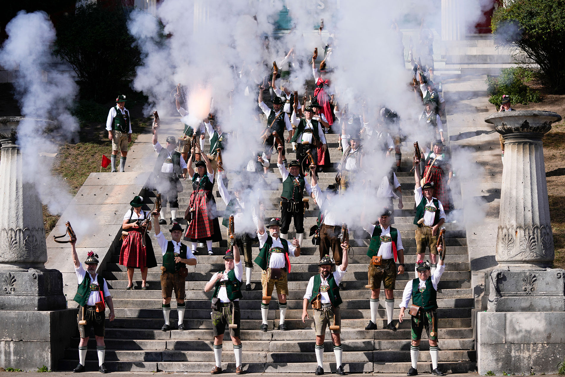 Ένα ακόμα Oktoberfest έφθασε στο τέλος του. Η μεγαλύτερη γιορτή μπύρας στον κόσμο, που ξεκινά στις 16 Σεπτεμβρίου και τελειώνει στις 3 Οκτωβρίου, γίνεται κάθε χρόνο στο Μόναχο, με τους απανταχού λάτρεις να βρίσκουν εκεί όποιο είδος επιθυμούν. Στην παραπάνω φωτογραφία από την τελευταία μέρα του Oktoberfest, διακρίνονται οι Βαυαροί τυφεκιοφόροι και οι γυναίκες με παραδοσιακές φορεσιές, να πυροβολούν με τα φυσίγγια τους.