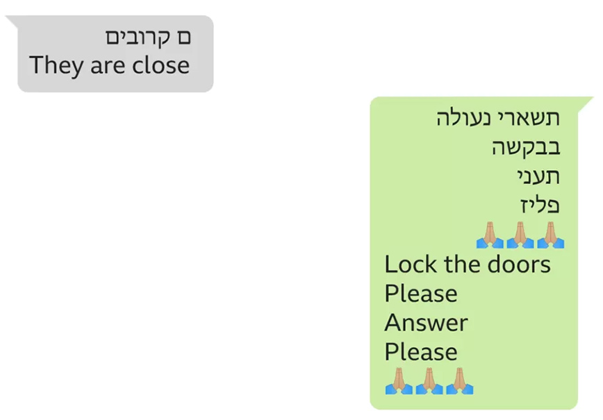 Τρέμει καθώς θυμάται να χάνει τις αισθήσεις της αφού οι ένοπλοι εισέβαλαν στο δωμάτιο ασφαλείας των κατοίκων και άνοιξαν πυρ για πρώτη φορά: «Πυροβολούσαν ανθρώπους. Πυροβολούσαν τα παιδιά. Και οι άνθρωποι φώναζαν “Σας παρακαλώ όχι, σας παρακαλώ όχι”. Προσπάθησα να ξυπνήσω γιατί δεν ήθελα να πεθάνω».