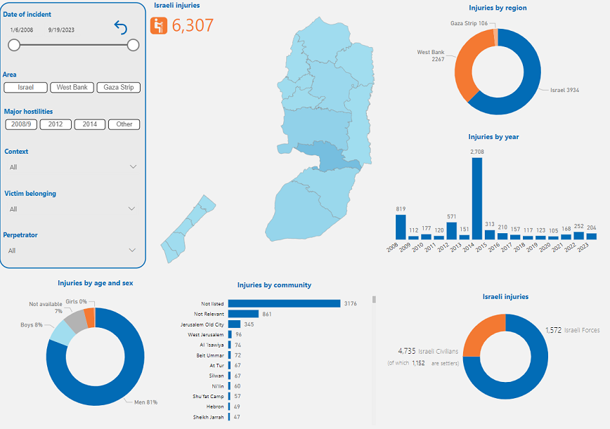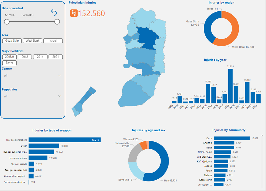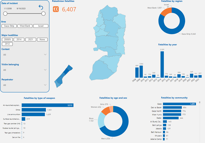Συγκεκριμένα, τα τελευταία 15 χρόνια έχουν σκοτωθεί 6.407 Παλαιστίνιοι και τραυματιστεί 152.560 άτομα. Μάλιστα, το τραγικό είναι πως μόνο 1.022 άτομα ήταν οπλισμένα, με την συντριπτική πλειοψηφία να είναι άμαχοι πολίτες.
