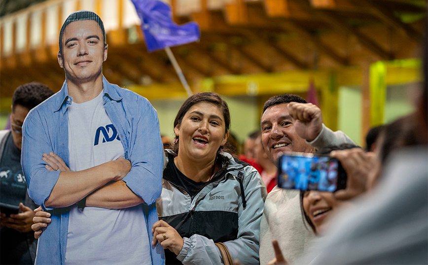 Στα 35 του χρόνια, ο Ντανιέλ Νομπόα, γιος του δισεκατομμυριούχου Άλβαρο Νομπόα, έγινε χθες Κυριακή ο νεότερος πρόεδρος που εκλέγεται στην ιστορία του Ισημερινού, κερδίζοντας τον δεύτερο γύρο των προεδρικών εκλογών με το 52,3% των ψήφων, κι υποσχέθηκε να πιάσει «αμέσως δουλειά» για να ξαναφέρει «την ειρήνη» στη χώρα που σπαράσσεται από τη βία των συμμοριών επιδιδόμενων πάνω απ’ όλα στη διακίνηση ναρκωτικών.