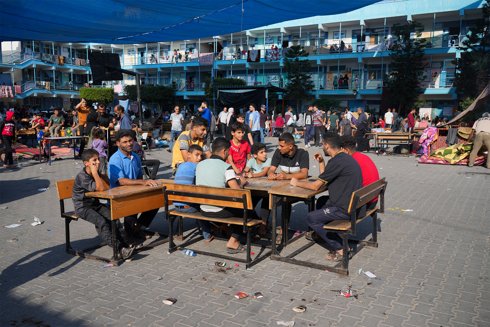 Τα σχολεία σε όλη την πόλη, θεωρούνται επίσης «ασφαλή», γι’ αυτό και πολλές οικογένειες βρίσκουν σε αυτά καταφύγιο. Η Khan Yunis ήταν ήδη πυκνοκατοικημένη. Πλέον, βουλιάζει. 50-60 άτομα μπορεί να στεγάζονται σε μικρά διαμερίσματα λίγων τετραγωνικών. Μητέρες και γιαγιάδες μαγειρεύουν σε παγκάκια του πάρκου και σε αυλές καθώς τα πεινασμένα παιδιά περιμένουν με ανυπομονησία. Αλλά όταν δεν υπάρχει πια χώρος ο κόσμος αναπόφευκτα ξεχύνεται στους δρόμους, γεμίζει τα σοκάκια και τις υπόγειες διαβάσεις και ζει και κοιμάται στο χώμα, στη σκόνη, στα ερείπια. Το φαγητό είναι ελάχιστο. Τα καύσιμα δεν επαρκούν. Το νερό λιγοστό. Είναι μία απελπιστική κατάσταση.