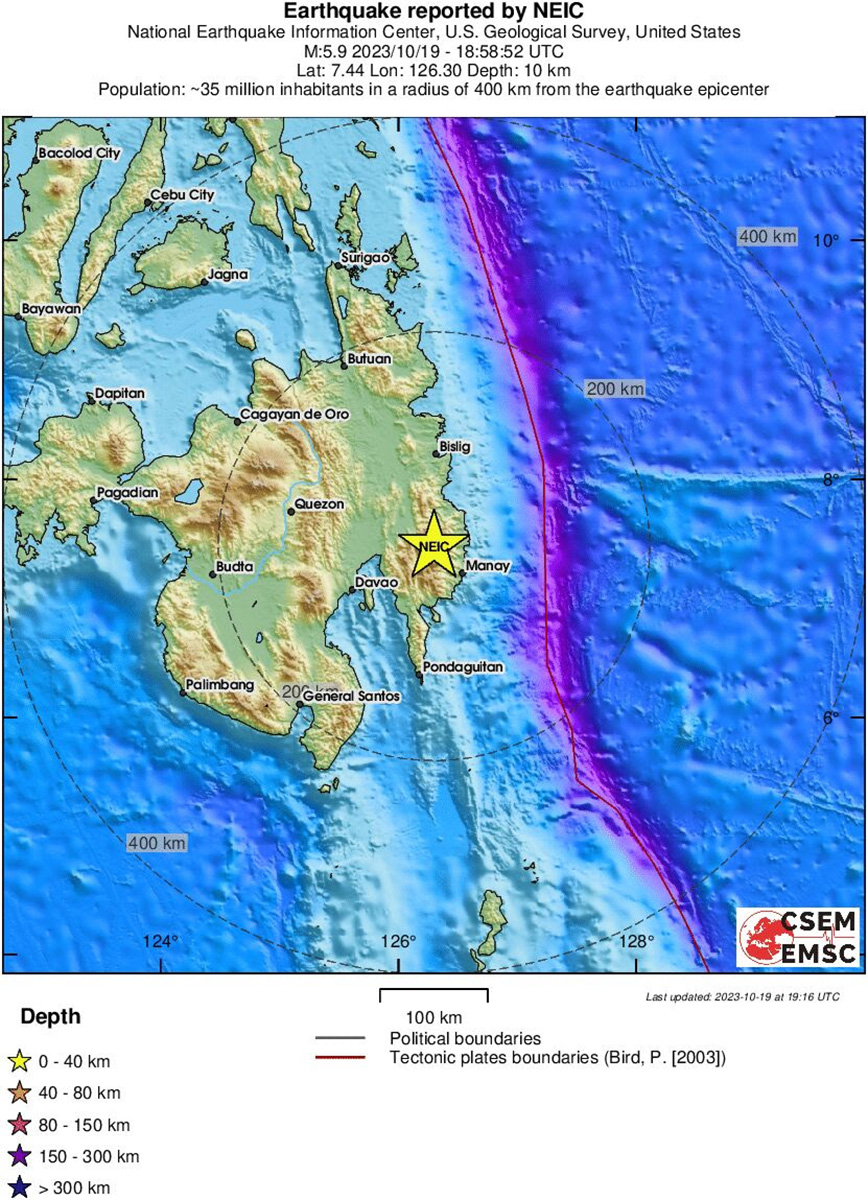 Σεισμική δόνηση μεγέθους 6,2 βαθμών σημειώθηκε πριν από λίγο στη νήσο Μιντανάο των Φιλιππίνων, όπως ανακοίνωσε το Ινστιτούτο Ηφαιστειολογίας και Σεισμολογίας της χώρας.