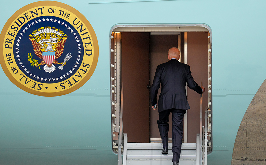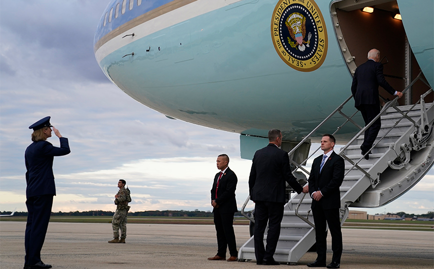 Όπως επίσης δεν βλέπουμε και τη συνοδεία του, που είναι συνήθως ένα αεροπλάνο, το οποίο είναι επίσης 747 και ονομάζεται Ε-4. Είναι το ιπτάμενο κέντρο διοίκησης. Εάν χρειαστεί, ο Αμερικανός πρόεδρος επιβιβάζεται σε εκείνο και από εκεί μπορεί να διοικήσει όλες τις μονάδες των αμερικανικών ενόπλων δυνάμεων, περιλαμβανομένων των βαλλιστικών πυραύλων, περιλαμβανομένων των υποβρυχίων, περιλαμβανομένων των βομβαρδιστικών. Άρα, μπορεί να δώσει τη μάχη στο κομμάτι μιας πολεμικής κρίσης από αυτό το αεροπλάνο. Όλος αυτός ο συρφετός των αεροπλάνων πηγαίνει κυριολεκτικά σαν κοπάδι. Δηλαδή όταν το αεροπλάνο προσγειωνόταν του Μπάϊντεν στο Τελ Αβίβ αυτό που μπορούμε να υποθέσουμε, γιατί δεν το ξέρουμε 100% ήταν ότι το αεροπλάνο το δεύτερο, το Ε-4B ήταν στη Σούδα και περίμενε εκεί μέχρι το επόμενο σκέλος του Αμερικανού προέδρου. Δηλαδή αν απομακρυνόταν και πήγαινε για παράδειγμα στη Σαουδική Αραβία, θα τον ακολουθούσε και θα προσγειωνόταν σε ένα εναλλακτικό αεροδρόμιο. Δεν πηγαίνουν ποτέ μαζί».
