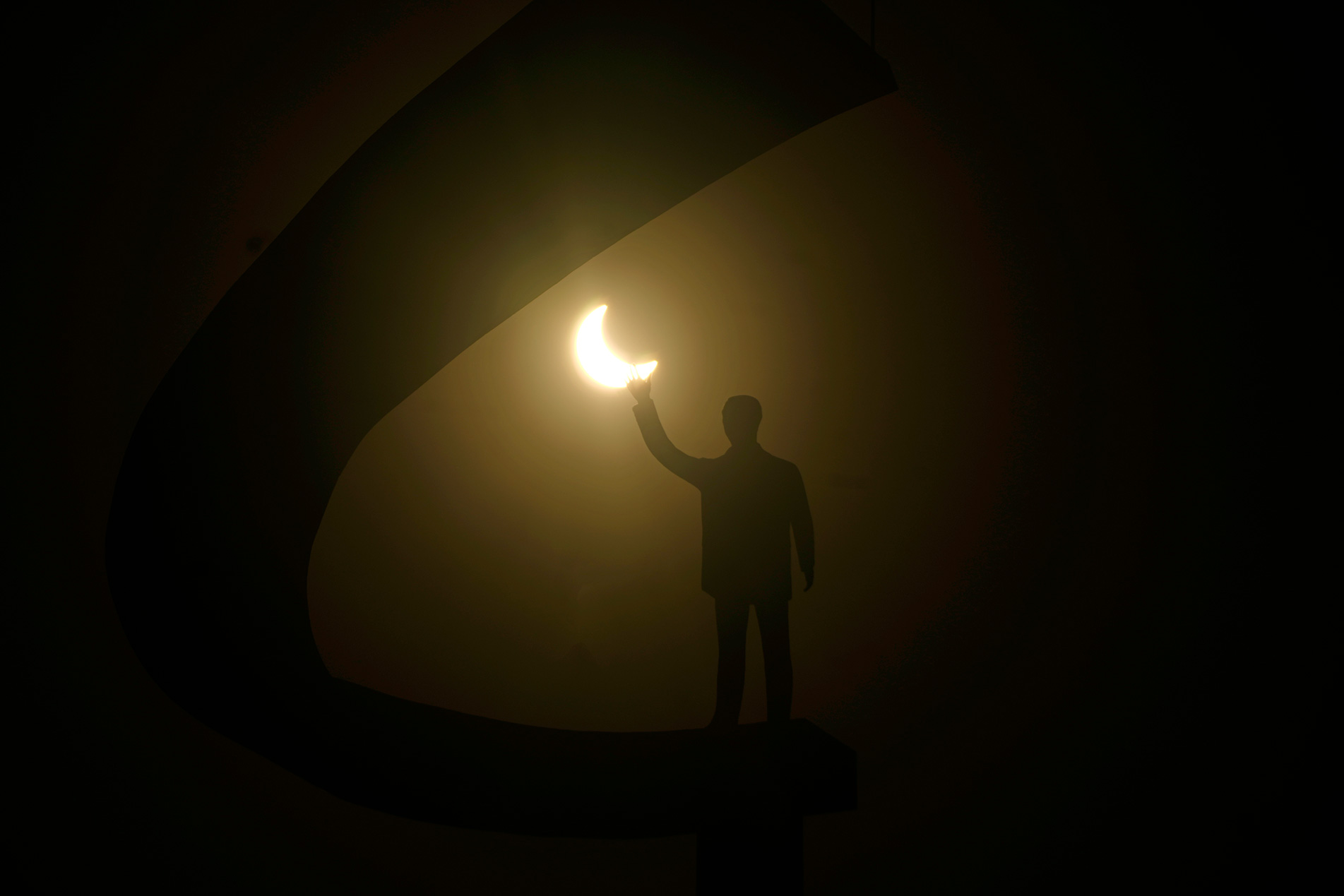 Μια ηλιακή έκλειψη έγινε ορατή στις χώρες της Λατινικής Αμερικής, με αυτή τη φωτογραφία από τη Βραζιλία να δείχνει την έκλειψη μέσα από το άγαλμα του πρώην προέδρου της Βραζιλίας Juscelino Kubitschek. Η Σελήνη κάλυψε το κέντρο του Ήλιου, αφήνοντας τα ορατά εξωτερικά άκρα του να σχηματίσουν ένα «δακτύλιο φωτιάς» ή δακτύλιο γύρω από τη Σελήνη.