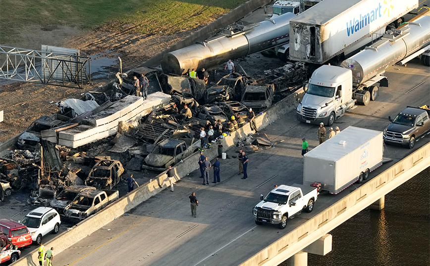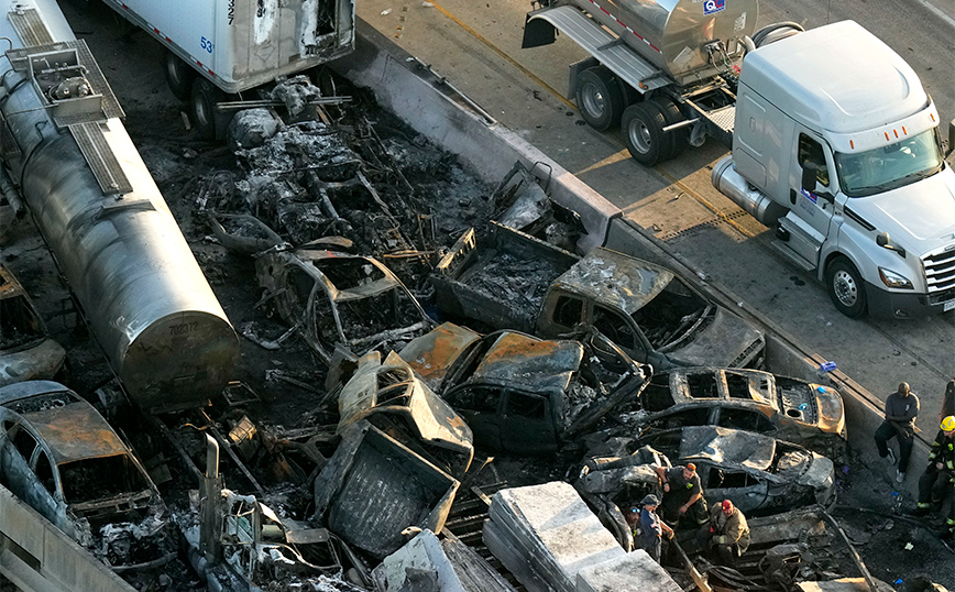 Τα βίντεο είναι αποκαλυπτικά και δείχνουν τα διαλυμένα και καμένα αυτοκίνητα στον αυτοκινητόδρομο Interstate 55 κοντά στη Νέα Ορλεάνη.