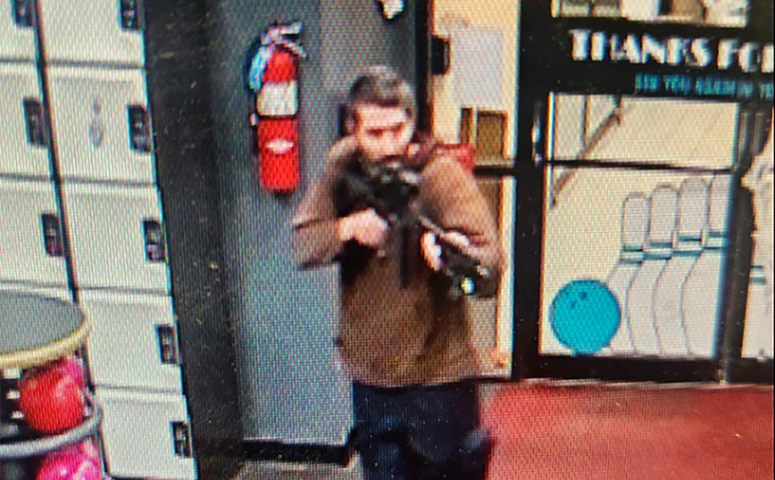 Κυκλοφόρησαν φωτογραφίες ενός άνδρα με μούσι που φορούσε καφέ φούτερ και τζιν σε μία από τις σκηνές των εγκλημάτων, κρατώντας κάτι που φαίνεται να είναι ένα ημιαυτόματο τουφέκι έτοιμο να πυροβολήσει.