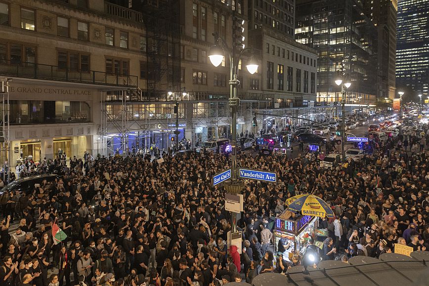 Η μαζική καθιστική διαμαρτυρία διοργανώθηκε από την εβραϊκή οργάνωση Jewish Voice for Peace-New York City (Εβραϊκή Φωνή για την Ειρήνη-Πόλη της Νέας Υόρκης), σύμφωνα με την οποία χιλιάδες υποστηρικτές απέκλεισαν την κύρια αίθουσα του σταθμού. Πρόκειται για την «μεγαλύτερη πράξη πολιτικής ανυπακοής που γνωρίσει η πόλη της Νέας Υόρκης σε είκοσι χρόνια», όπως σημείωσε.