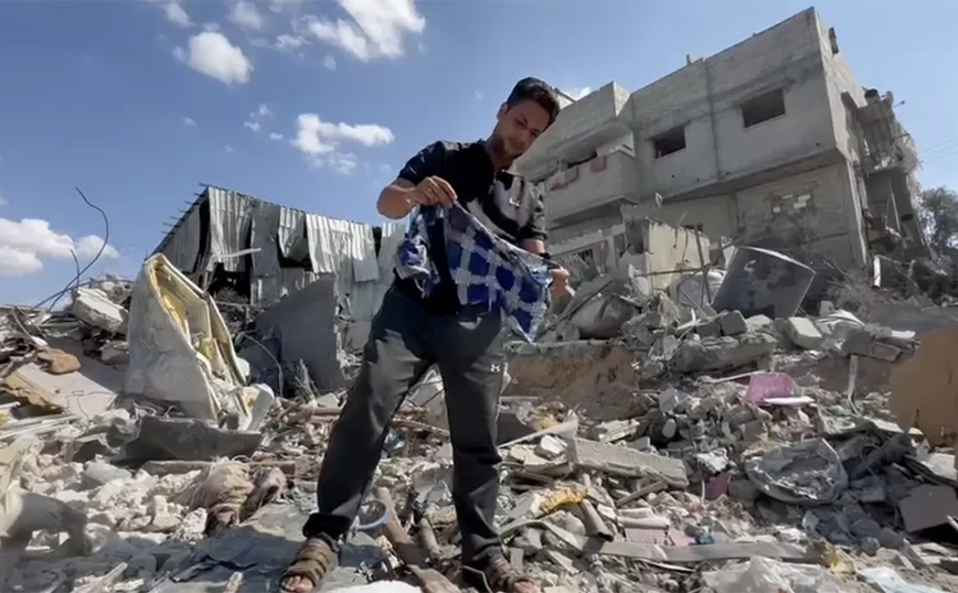 Η κάμερα του BBC, καταγράφει τον Khalil που διασχίζει προσεκτικά τα ερείπια του σπιτιού του που απέχει μόλις λίγα λεπτά με τα πόδια από το νοσοκομείο. Τώρα υπάρχει ένας σωρός από σκόνη και μέταλλα, αντικείμενα και παιδικά παιχνίδια: ένα μικρό τύμπανο, ένα παιχνίδι πιάνο.
