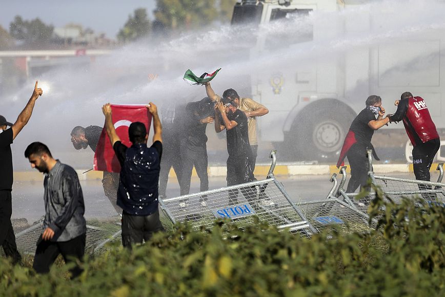 Η τουρκική αστυνομία έκανε το μεσημέρι της Κυριακής χρήση δακρυγόνων και αντλιών νερού για να διαλύσει συγκέντρωση διαμαρτυρίας υπέρ των Παλαιστινίων, όταν οι διαδηλωτές επιχείρησαν να μπουν στην αεροπορική βάση του Ιντζιρλίκ, όπου σταθμεύουν αμερικανικές δυνάμεις.