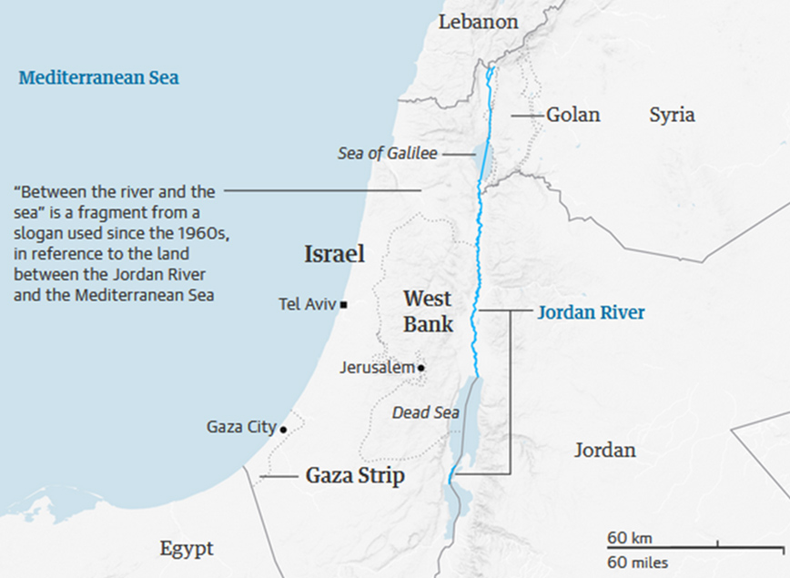 Το πλήρες ρητό έχει ως εξής: «Από το ποτάμι μέχρι τη θάλασσα, η Παλαιστίνη θα είναι ελεύθερη» – μια αναφορά στη γη μεταξύ του ποταμού Ιορδάνη, που συνορεύει με το ανατολικό Ισραήλ, και της Μεσογείου στα δυτικά.