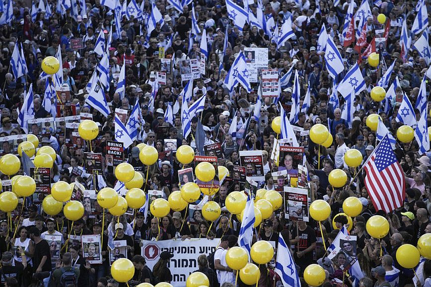 Καθώς οι διαδηλωτές έμπαιναν στην πρωτεύουσα, οι κάτοικοι τους υποδέχτηκαν κρατώντας κίτρινα μπαλόνια τα οποία έγραφαν μηνύματα για την επιστροφή των ομήρων.