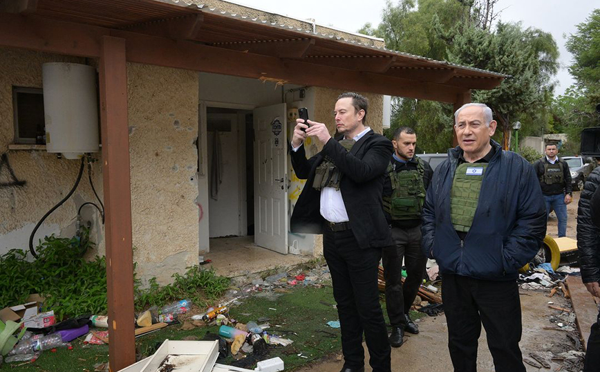 Ο Έλον Μασκ έφτασε στο Ισραήλ και μαζί με τον Μπενιαμίν Νετανιάχου επισκέφθηκαν ένα κιμπούτς στα σύνορα με την Γάζα, το οποίο δέχτηκε την χειρότερη επίθεση από την Χαμάς στις 7 Οκτωβρίου