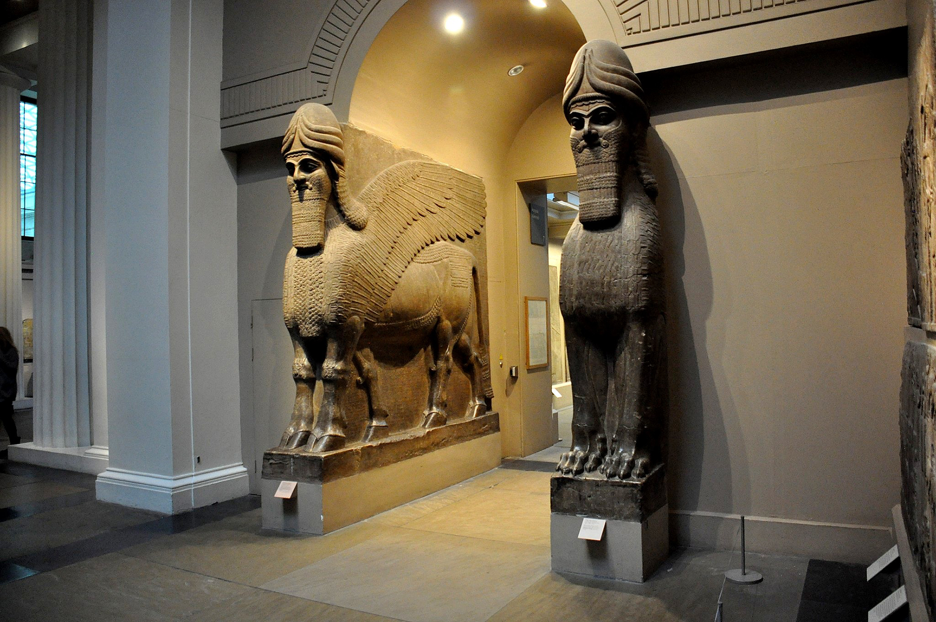 Το αγάλματα του Λαμάσσου, ενός φτερωτού τέρατος με κεφάλι ανθρώπου της ασσυριακής μυθολογίας, πλαισίωναν την πόρτα της αίθουσας του θρόνου του βορειοδυτικού παλατιού του ασσύριου βασιλιά Ασουρνασιρπάλ, στο Νιμρούντ, μια αρχαία πόλη που βρίσκεται στο Ιράκ, 30 χιλιόμετρα νότια της Μοσούλης. Χρονολογείται από το 865 π.Χ. έως το 860 π.Χ. Ανακαλύφθηκε από τον Όστιν Χέντρι Λάιαρντ, Άγγλο ασσυριολόγο περιηγητή, και αποκτήθηκε από το μουσείο το 1851. Τα τελευταία χρόνια, το Βρετανικό Μουσείο έχει επαναπατρίσει κομμάτια που είχαν ληφθεί παράνομα από το Ιράκ κατά τη διάρκεια της εισβολής του 2003.