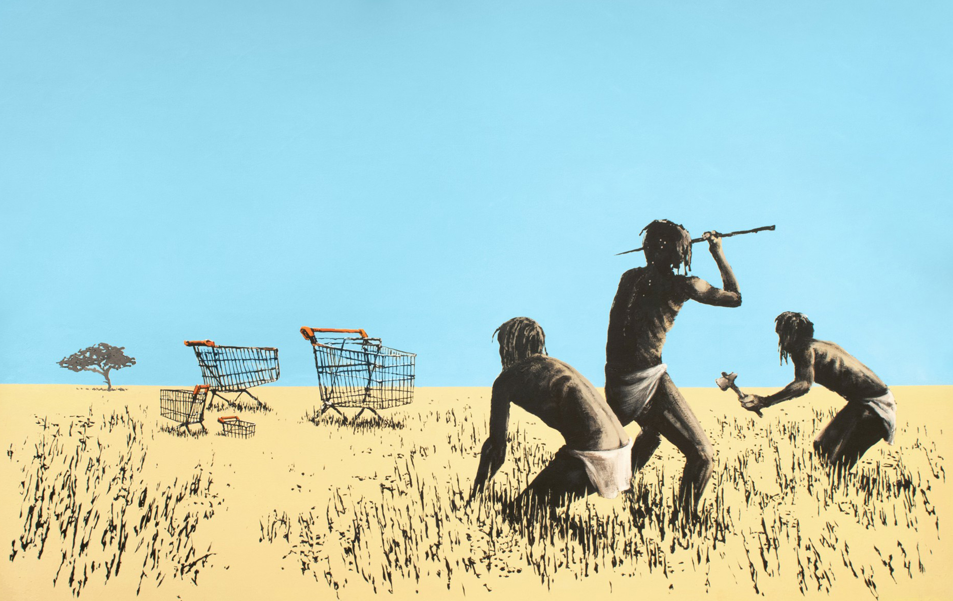 Η πρώτη του μεγάλη τοιχογραφία είναι το «the mild mild west». Όπως συμβαίνει με τα περισσότερα έργα του, και στο «the mild mild west» κυριαρχεί το πνευματώδες και ειρωνικό παράδοξο: Ένα λούτρινο αρκουδάκι πετάει μια βόμβα μολότοφ σε αστυνομικές δυνάμεις.