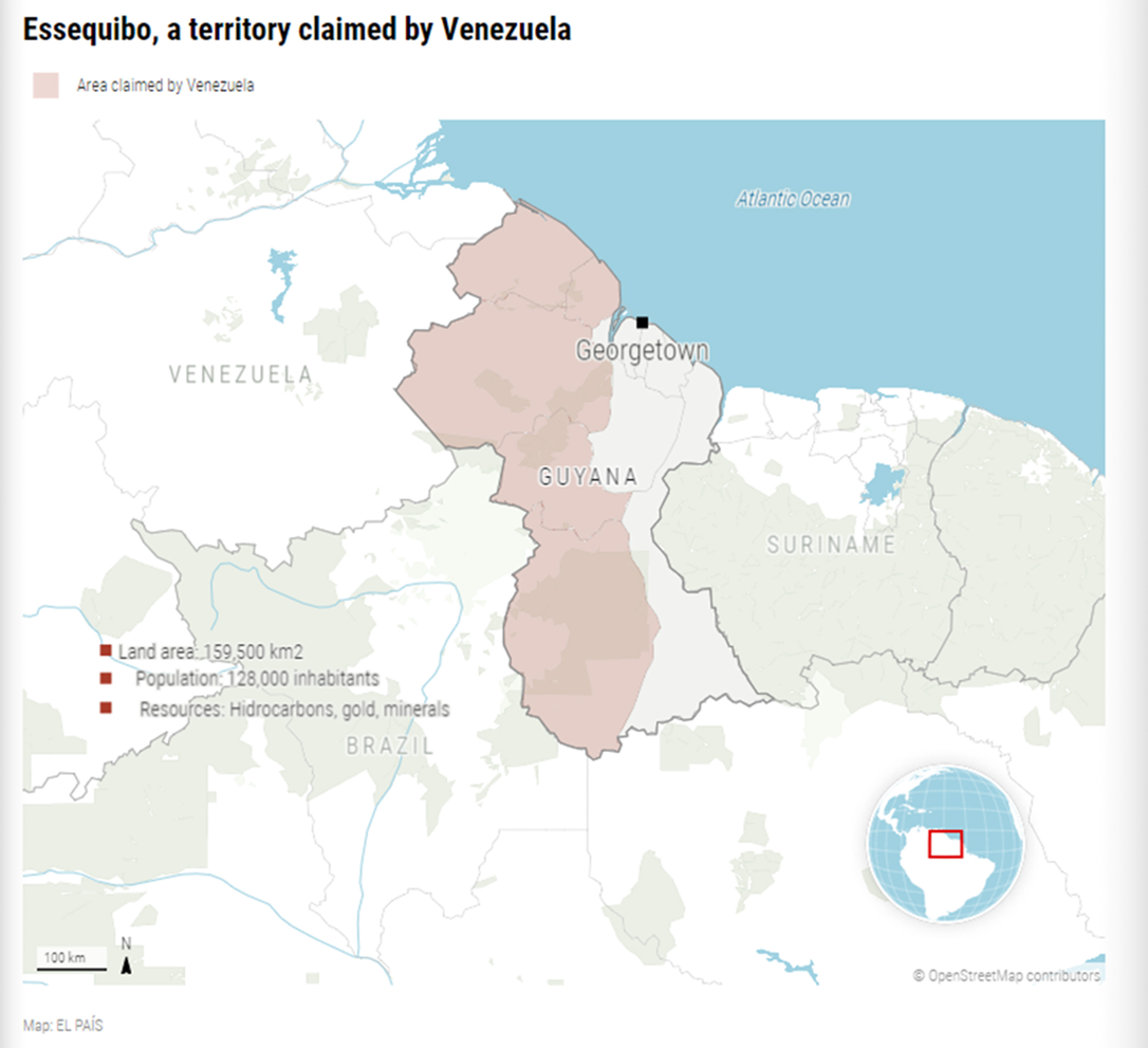 Την Κυριακή η κυβέρνηση του Νικολάς Μαδούρο πήρε μέσω ενός δημοψηφίσματος το «πράσινο φως» για να προσαρτήσει την πλούσια σε φυσικό αέριο και πετρέλαιο περιοχή Εσεκίμπο (ή Εσεκίμπα), την οποία διαχειρίζεται η Γουιάνα για περισσότερο από έναν αιώνα, αλλά διεκδικείται από τη Βενεζουέλα. Αν και η διαμάχη πάει πολύ πίσω στο χρόνο, έχει ενταθεί από τότε που η ExxonMobil ανακάλυψε στο Εσεκίμπο σημαντικά κοιτάσματα πετρελαίου, το 2015.