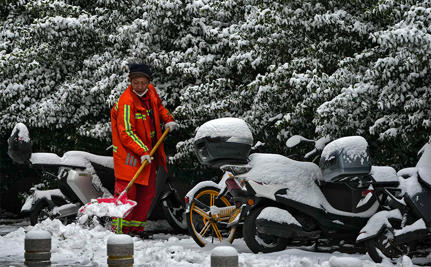 Στην πρωτεύουσα της επαρχίας Χενάν της κεντρικής Κίνας, την Ζενγκτζόου, έκλεισαν σήμερα τα σχολεία καθώς καταγράφηκε υετός 14,2 χιλιοστά με το ύψος του χιονιού να φθάνει τα 10 εκατοστά.