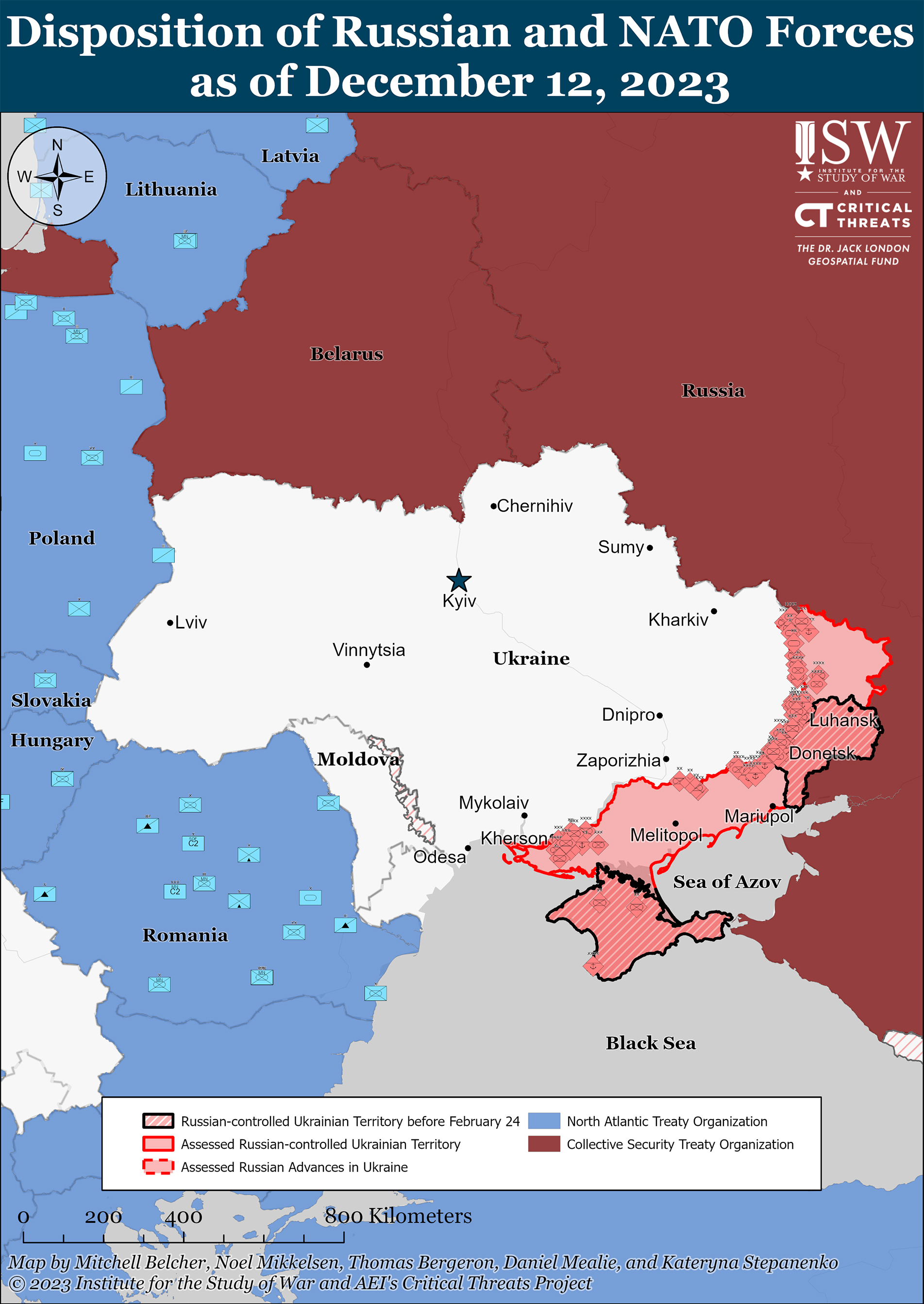 Οι ακόλουθοι χάρτες του ISW απεικονίζουν τέσσερις στρατιωτικές καταστάσεις που σχετίζονται με τις εξελίξεις στον πόλεμο στην Ουκρανία: