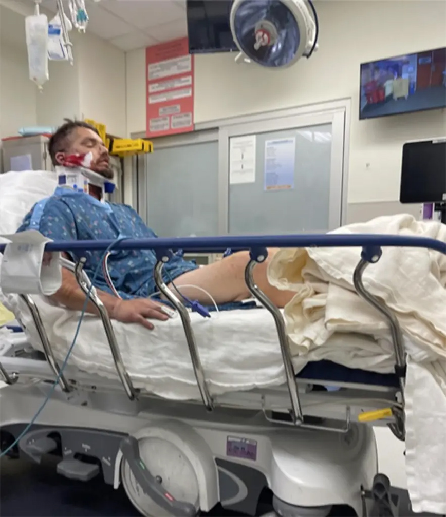 Η έκρηξη προκάλεσε στον βετεράνο του αμερικανικού στρατού κάταγμα στο κρανίο, εγκεφαλική αιμορραγία, σπάσιμο στο σαγόνι, εγκαύματα τρίτου βαθμού και αρκετά θραύσματα στο κορμί του.