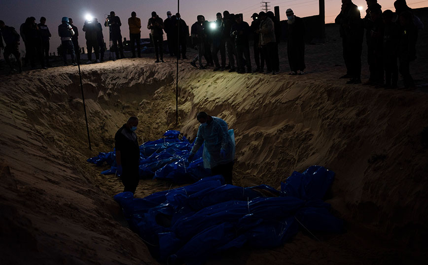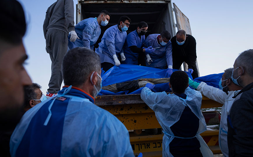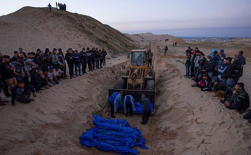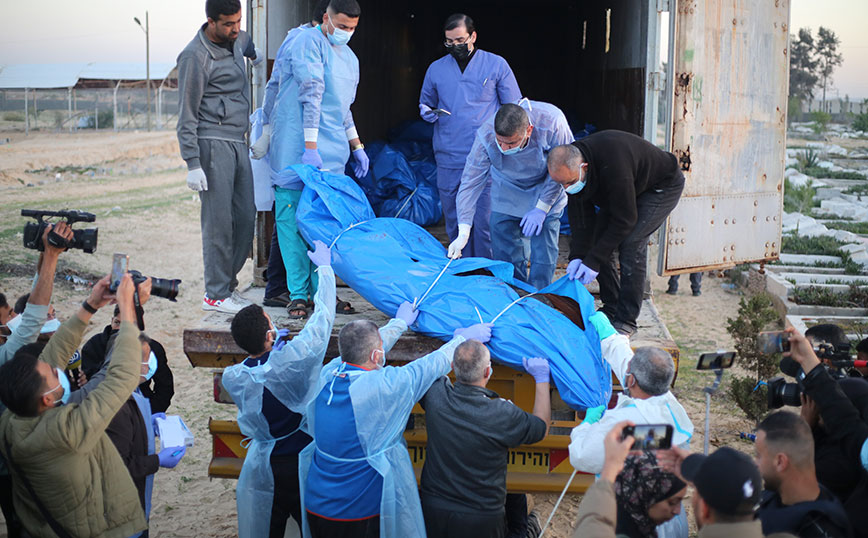 Πτώματα Παλαιστινίων μεταφέρθηκαν με φορτηγό στη Ράφα όπου θάφτηκαν σε ομαδικό τάφο, διαπίστωσε δημοσιογράφος του Γαλλικού Πρακτορείου, όπως αναμεταδίδει το Αθηναϊκό Πρακτορείο.