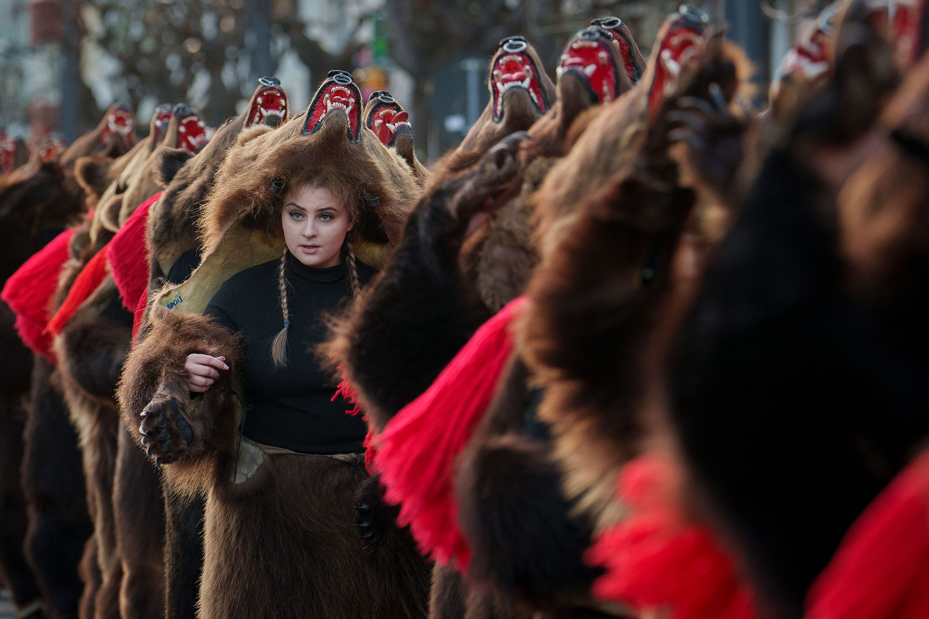 Οι δρόμοι στο Moinesti της βόρειας Ρουμανίας γέμισαν με αρκούδες, καθώς έλαβε χώρα η παρέλαση από μέλη της παραδοσιακής αγέλης των αρκούδων. Η παράδοση των αρκούδων που χορεύουν προέρχεται από την προχριστιανική εποχή, όταν οι χορευτές που φορούσαν χρωματιστές στολές ή γούνες ζώων, περιόδευαν από σπίτι σε σπίτι στα χωριά, τραγουδώντας και χορεύοντας για να αποτρέψουν το κακό.