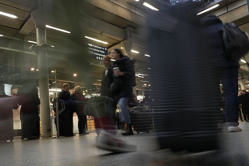 Σήμερα το πρωί στο σταθμό Σεντ Πάνκρας οι επιβάτες σχηματίζουν μεγάλες ουρές. Τα δρομολόγια γίνονται ωστόσο στην ώρα τους, αν και ένα μήνυμα προειδοποιεί πως είναι πιθανό να διαρκέσουν περισσότερο απ’ ό,τι συνήθως.