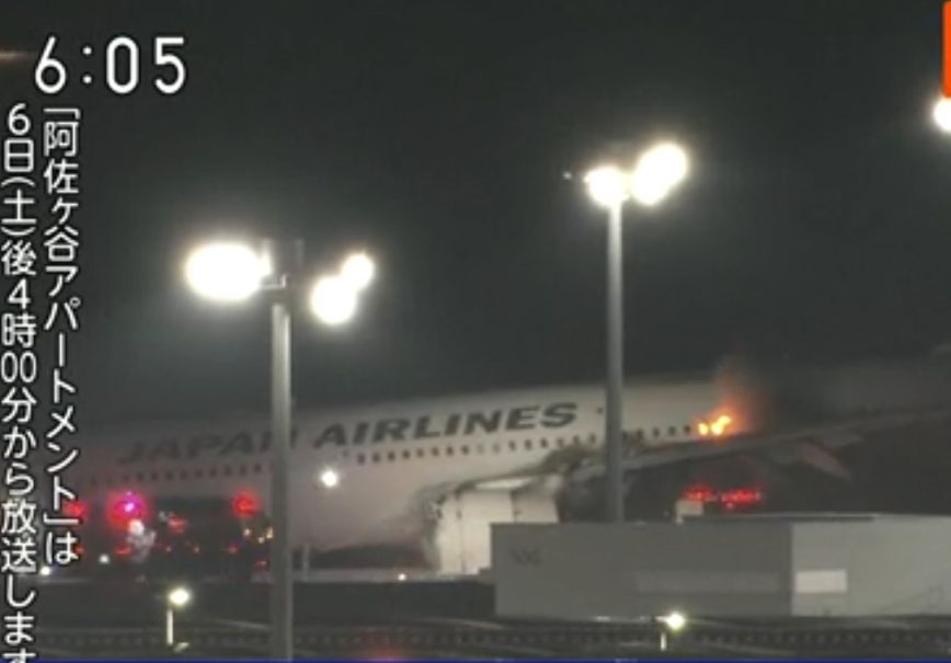 Σύμφωνα με το BBC που επικαλείται το NHK, το αεροπλάνο ήταν της Japan Airlines και φαίνεται να συγκρούστηκε με αεροσκάφος της Ακτοφυλακής το οποίο βρισκόταν στον αεροδιάδρομο. Στα βίντεο που κάνουν τον γύρο του κόσμου καταγράφεται φωτιά και στο βάθος στον διάδρομο προσγείωσης.