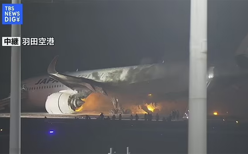 Φωτιά ξέσπασε σε αεροπλάνο στο διάδρομο προσγείωσης στο αεροδρόμιο του Τόκιο, Χανέντα, στην Ιαπωνία. Πλάνα που μεταδόθηκαν από το δημόσιο τηλεοπτικό δίκτυο NHK δείχνουν φλόγες να ξεπηδούν από τα παράθυρα του αεροσκάφους.