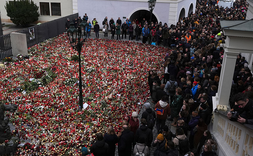 Φοιτητές και καθηγητές τίμησαν σήμερα τη μνήμη των 14 θυμάτων της χειρότερης μαζικής ένοπλης επίθεσης στην Τσεχία, καθώς σχημάτισαν μια ανθρώπινη αλυσίδα για να «αγκαλιάσουν», συμβολικά, το κτίριο του πανεπιστημίου, όπου ο ένοπλος άνοιξε πυρ λίγο πριν τα Χριστούγεννα.