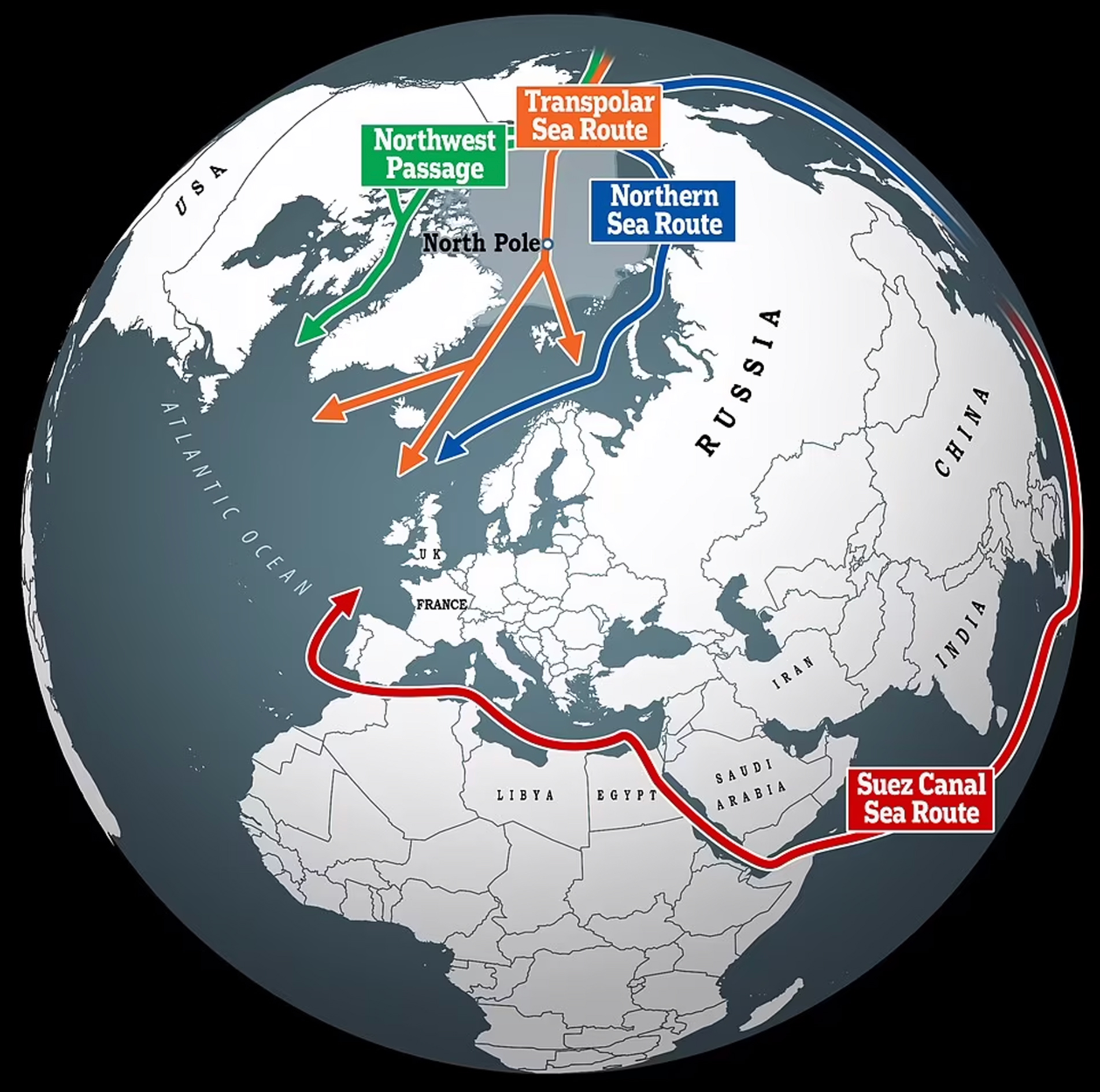 Το λιώσιμο των πάγων της Αρκτικής σημαίνει ότι όλο και περισσότερα πλοία θα μπορούν να διασχίζουν περιοχές που κάποτε ήταν απρόσιτες ή απαιτούσαν τουλάχιστον τη συνοδεία παγοθραυστικών. Τα νέα δεδομένα καθιστούν τον βόρειο πόλο μια εξαιρετικά ελκυστικά διαδρομή για το παγκόσμια εμπόριο που συνεπάγεται τεράστια οικονομικά οφέλη για όσες χώρες αποκτήσουν έλεγχο στην περιοχή.