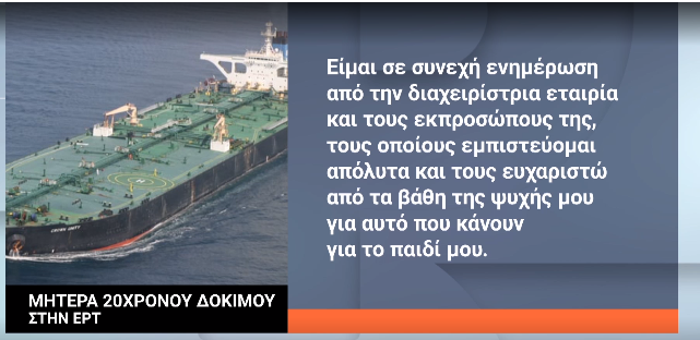 Την αγωνία της για την εξέλιξη των γεγονότων μοιράστηκε η μητέρα του 20χρονου Έλληνα δόκιμου πλοιάρχου, που βρίσκεται ανάμεσα στο πλήρωμα, μιλώντας στην ΕΡΤ.