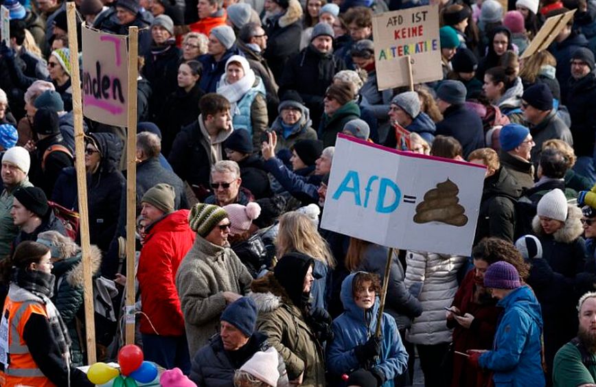 Εκατοντάδες χιλιάδες άνθρωποι διαδήλωσαν σήμερα σε όλη τη Γερμανία κατά του ακροδεξιού κόμματος AfD και της ακραίας ιδεολογίας του, μετά τις αποκαλύψεις για τη συνάντηση στελεχών του με νεοναζιστική οργάνωση και το σχέδιο για απελάσεις μεταναστών, που εδώ και μία εβδομάδα έχει οδηγήσει σε σπάνιες, μαζικές κινητοποιήσεις.