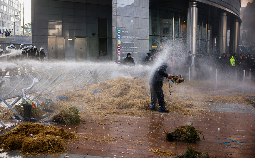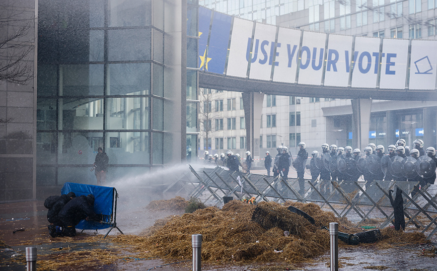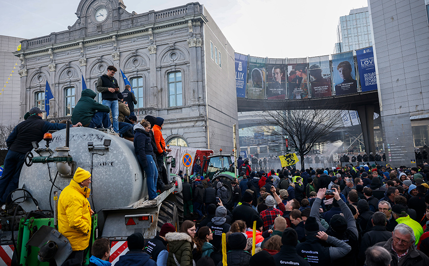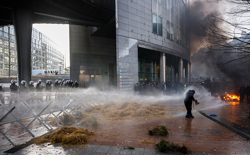 Αγρότες εκτόξευσαν σήμερα αυγά και πέτρες εναντίον του Ευρωπαϊκού Κοινοβουλίου στις Βρυξέλλες, ανάβοντας φωτιές κοντά στο κτίριο και ρίχνοντας πυροτεχνήματα, ώστε να ασκήσουν πίεση στη Σύνοδο Κορυφής των ευρωπαίων ηγετών να κάνει περισσότερα, για να τους βοηθήσει με τους φόρους και το αυξανόμενο κόστος παντού.
