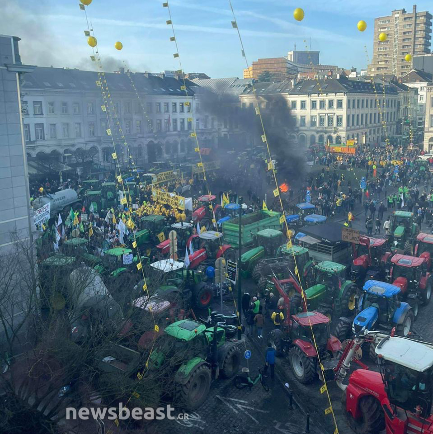 Μείζονες οδικές αρτηρίες στις Βρυξέλλες, στην καρδιά της Ευρωπαϊκής Ένωσης, έχουν αποκλεισθεί από περίπου 1.300 τρακτέρ, σύμφωνα με εκτίμηση της αστυνομίας. Αγρότες από την Ιταλία, την Ισπανία και άλλες ευρωπαϊκές χώρες συμμετέχουν, επίσης, στις εκδηλώσεις διαμαρτυρίας.