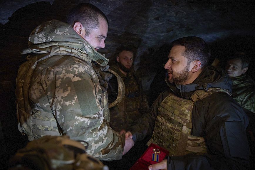 Ο πρόεδρος Βολοντίμιρ Ζελένσκι επισκέφθηκε ουκρανικά στρατεύματα στο νοτιοανατολικό μέτωπο και απένειμε μετάλλια, ανέφερε σήμερα το γραφείο του εν μέσω έντονων εικασιών ότι ο δημοφιλής επικεφαλής του στρατού πρόκειται σύντομα να αποπεμφθεί.