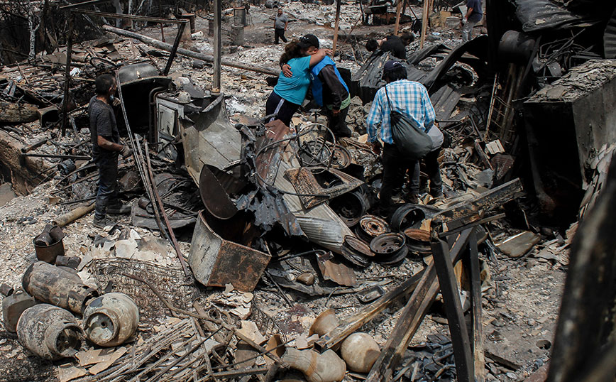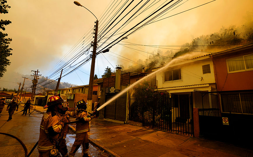 Ελικόπτερα πέταξαν τόνους νερού για να κατασβήσουν τις δασικές πυρκαγιές που εξακολουθούν και μαίνονται σήμερα στην κεντρική Χιλή, την ώρα που πυροσβέστες περιγράφουν στο Reuters πώς ανασύρουν πτώματα θαμμένα στα συντρίμμια των κτιρίων, τρεις ημέρες αφότου ξεκίνησαν οι πυρκαγιές.