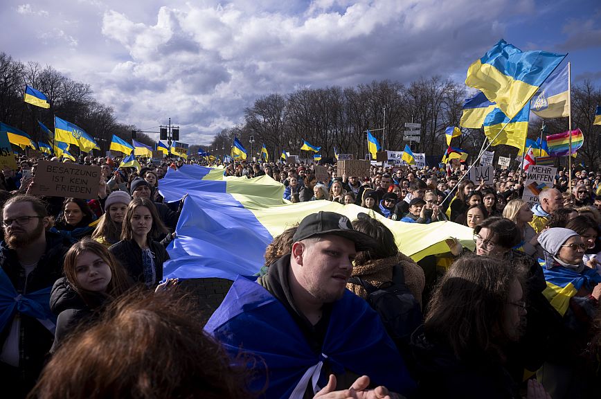 «Η θέση όλων στον πόλεμο αυτόν για την ελευθερία είναι στο πλευρό των ουκρανών φίλων μας», δήλωσε κατά την συγκέντρωση ο δήμαρχος του Βερολίνου Κάι Βέγκνερ.
