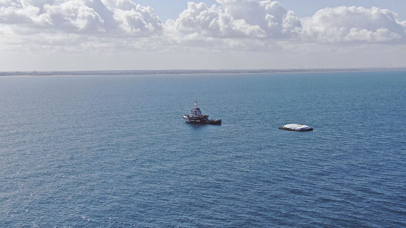 Οι προμήθειες αυτές, που είναι περίπου 200 τόνοι τροφίμων, σύμφωνα με τη ΜΚΟ, μεταφέρθηκαν από την Κύπρο με φορτηγίδα που ρυμουλκούσε το πλοίο της ισπανικής μκο Open Arms, που απέπλευσε την Τρίτη από το κυπριακό λιμάνι της Λάρνακας.