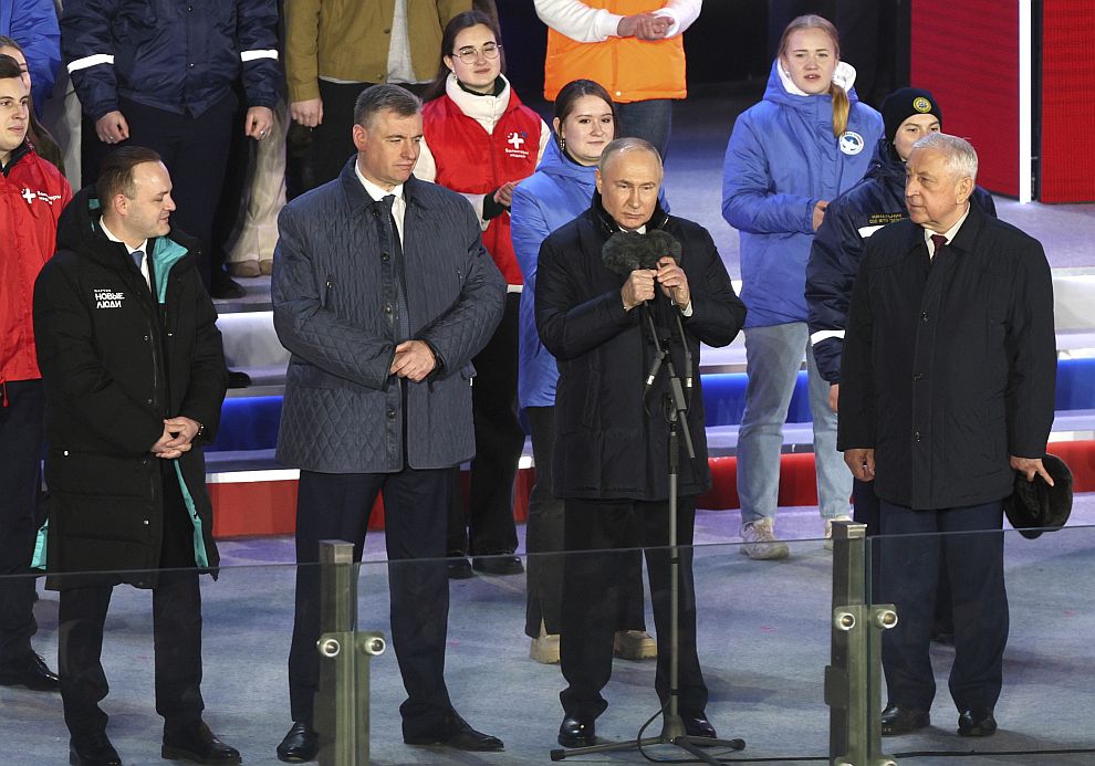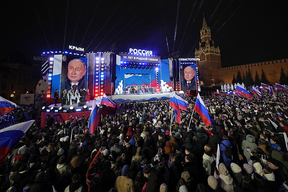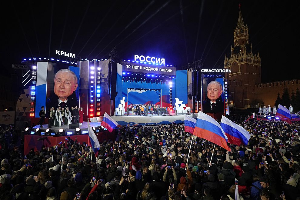 Ο Βλαντίμιρ Πούτιν απευθύνθηκε στο πλήθος που είχε συγκεντρωθεί στην Κόκκινη Πλατεία της Μόσχας για να παρακολουθήσει πατριωτική συναυλία εορτασμού της 10ης επετείου της προσάρτησης της Κριμαίας.