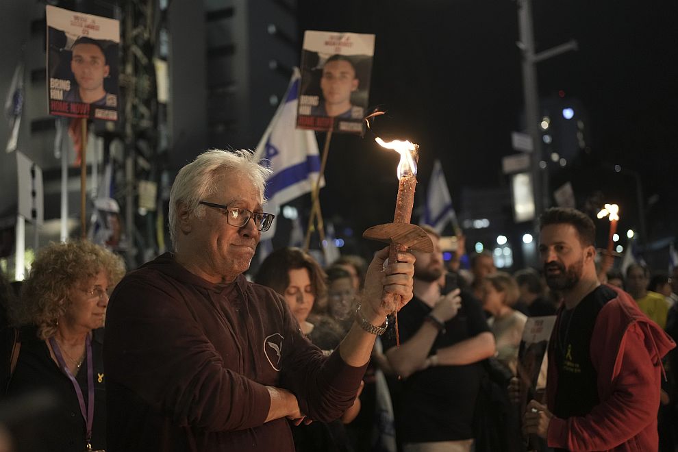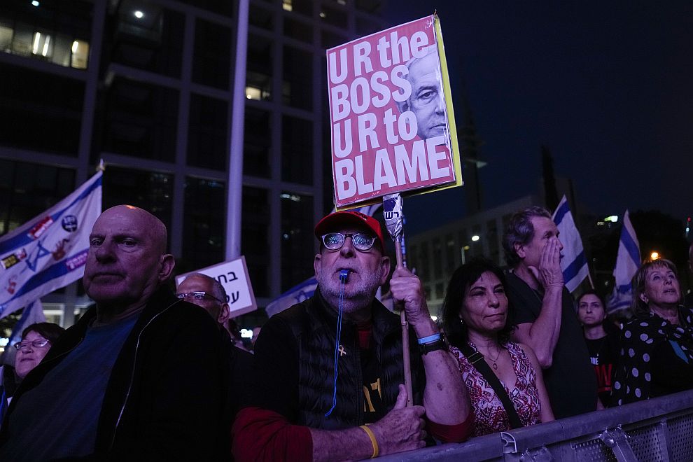 Στο Τελ Αβίβ, διαδηλωτές ζήτησαν διεξαγωγή πρόωρων εκλογών καθώς και την απελευθέρωση των ομήρων που συνεχίζει να κρατά η Χαμάς στη Γάζα.