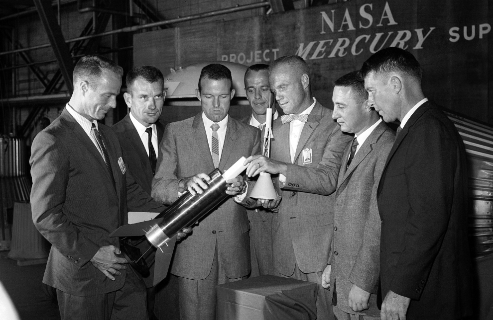 1959: Η NASA ανακοινώνει την επιλογή των επτά αστροναυτών, που θα επανδρώσουν την αποστολή Mercury.